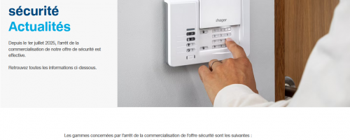 Nous avons eu l'information il y a quelques jours de cela, notre fabricant HAGER a cessé la commercialisation de ses alarmes et autres produits concernant la sécurité. Nous ne pourrons ...