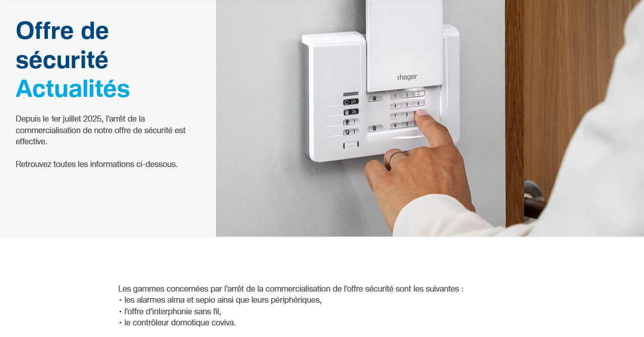 Nous avons eu l'information il y a quelques jours de cela, notre fabricant HAGER a cessé la commercialisation de ses alarmes et autres produits concernant la sécurité.